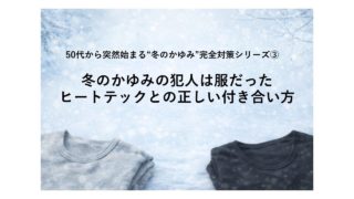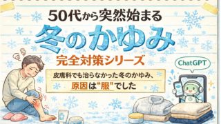 50代から突然始まる冬のかゆみ。その原因は乾燥だけではありませんでした。ヒートテックや化学繊維との付き合い方を見直し、「綿を1枚挟む」だけで改善した実体験を詳しく解説します。