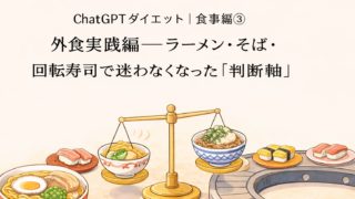 昼食を何となく選ぶのをやめ、ChatGPTと夫婦で「判断軸」を決めました。そば・カレー・チャーハンをどう変えたか。無理なく続く内食ダイエットの実例を紹介します。