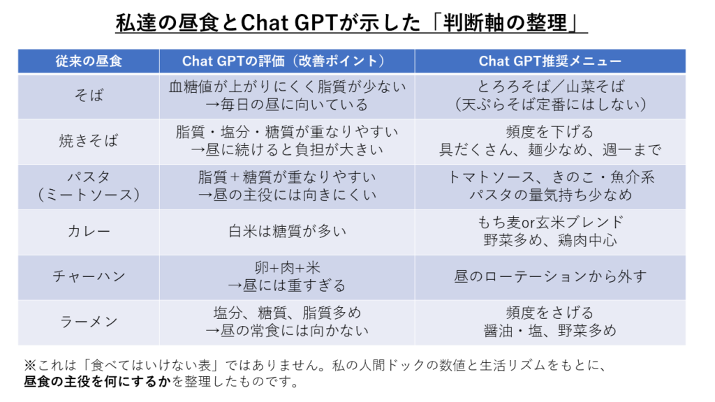 ChatGPTダイエット 内食編② 昼食 夫婦で決めた「昼ごはんの判断軸」