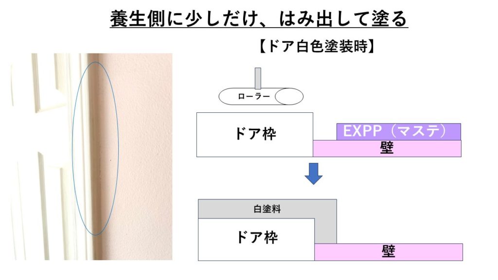 - コツはテープを1〜2mm養生したい側にずらして貼ること。 こうすると境目が自然で、仕上がりが美しくなります。