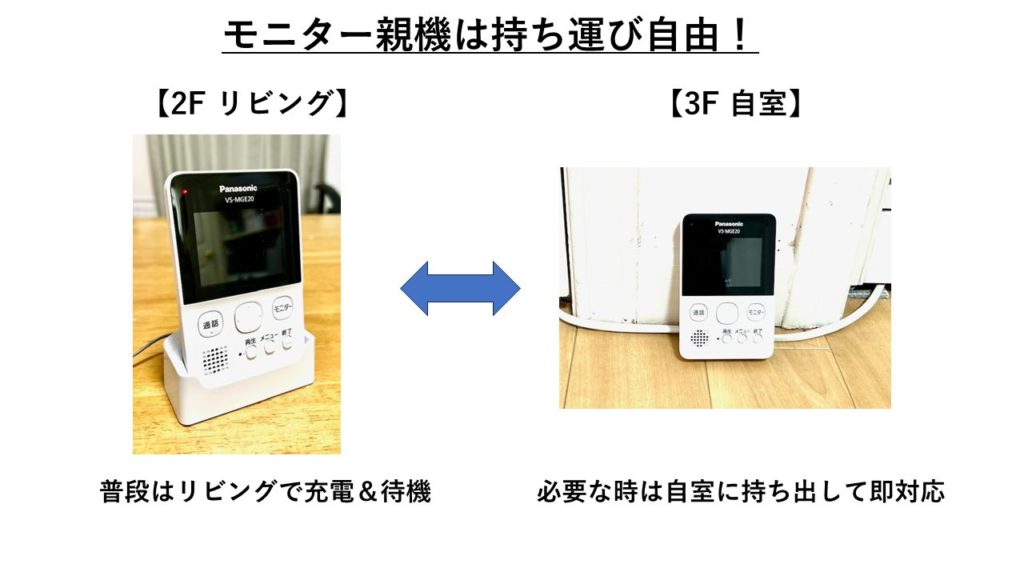 3. モニター親機を移動できること(リビング・自室どちらでも使える)