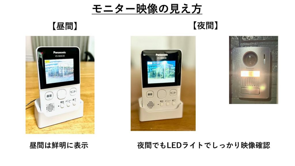 映像は従来のものと比べて圧倒的に鮮明。昼間はもちろん、夜間でも内蔵LEDライトのおかげで訪問者の顔がはっきり確認できます。
